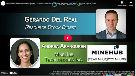 Click on the links below to watch MineHub CEO Andrea Aranguren interviewed by Making Money Matter’s Kerry Stevenson and Resource Stock Digest’s Gerardo Del Real, and renowned resource newsletter writer Nick Hodge discussing this transformational mining company.