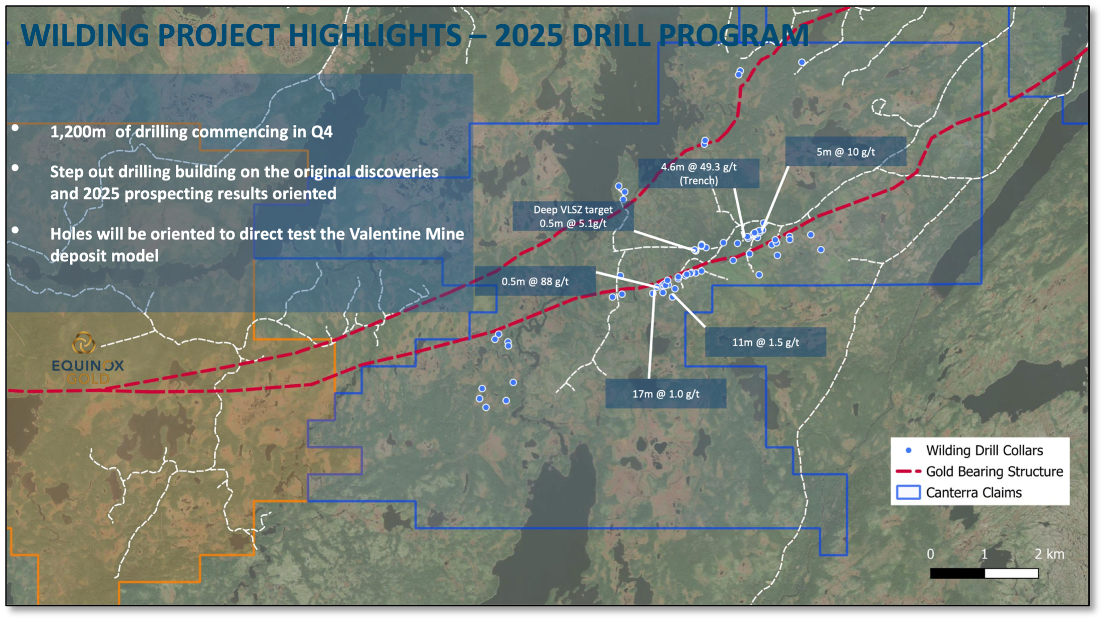 | Just over a week ago — on November 3, 2025 — Canterra announced drilling had commenced on its Wilding Gold Project, testing stacked extensional quartz–gold–tourmaline–pyrite veins along the massive 55-kilometer-long geological corridor that includes the Valentine deposits.