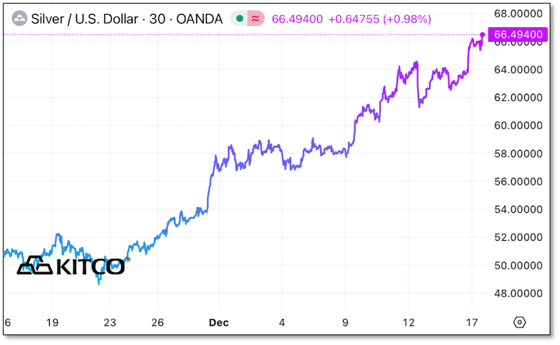 | As I write, silver is up over $2.60...well over 4%...and nicely above $66.